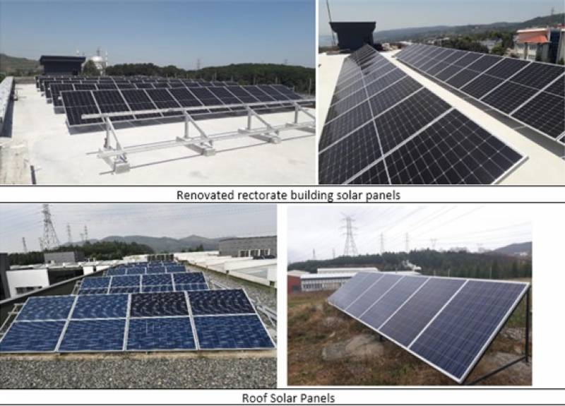 Yenilenen Rektörlük binasına kurulan güneş panelleri gelecek yıldan itibaren enerji üretimine başlayacaktır.